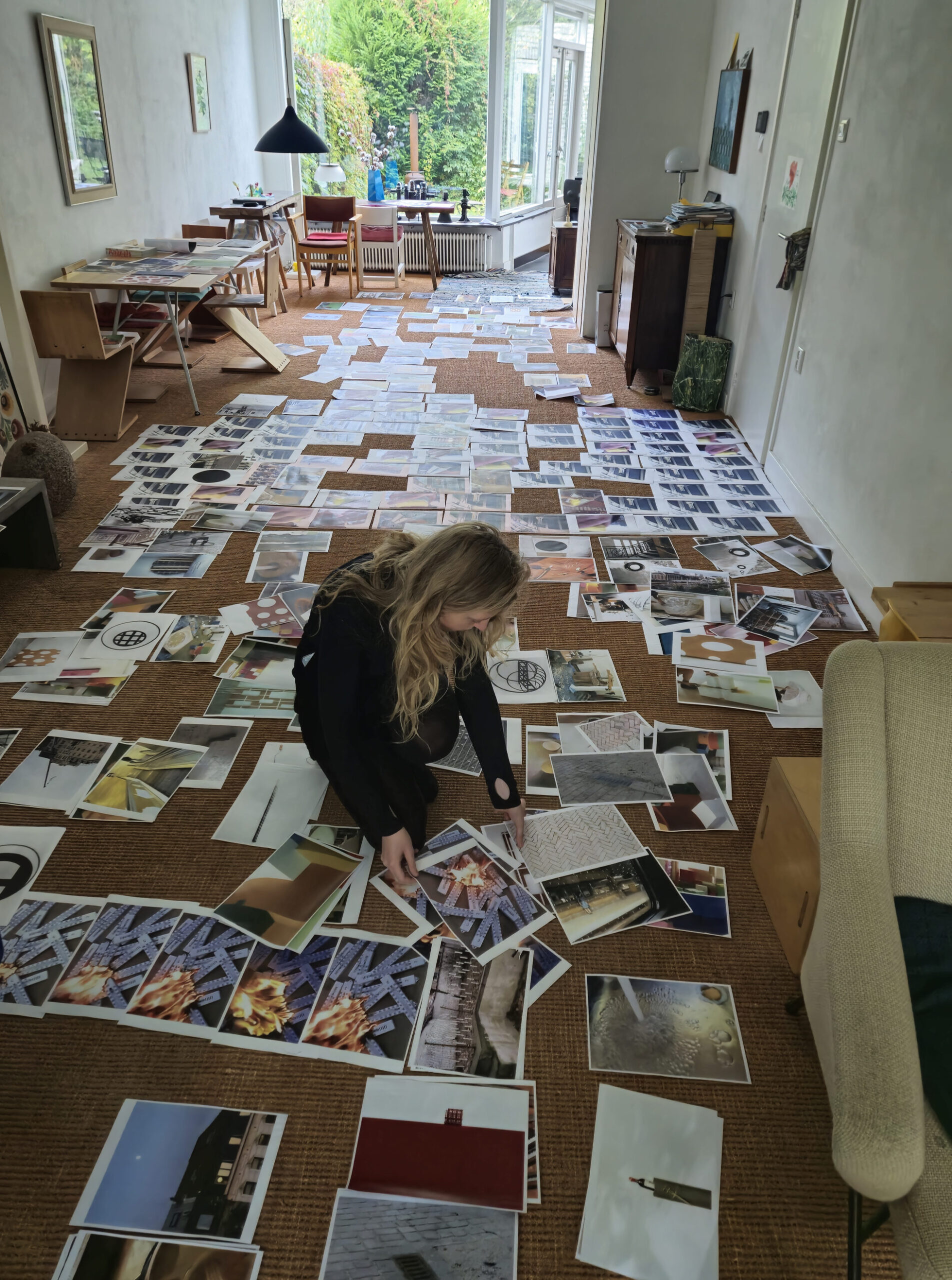 Bij het samenstellen van Verborgen orde zocht ik naar vormovereenkomsten en inhoudelijke verbanden. Ik begon met het printen van al het beschikbare beeldmateriaal en verspreidde het over de vloer, waardoor een tapijt van A4’tjes ontstond. Sommige werken keren meermalen terug of heb ik een kwartslag gedraaid, waardoor ze zich in een nieuwe context, anders gaan gedragen. Door het volledige oeuvre te overzien, wordt zichtbaar hoe het werk evolueert, en hoe terugkerende thema’s en patronen steeds opnieuw opduiken. Verborgen Orde is daarmee zowel een kunstboek als een persoonlijk document over kunstenaarschap en toewijding.