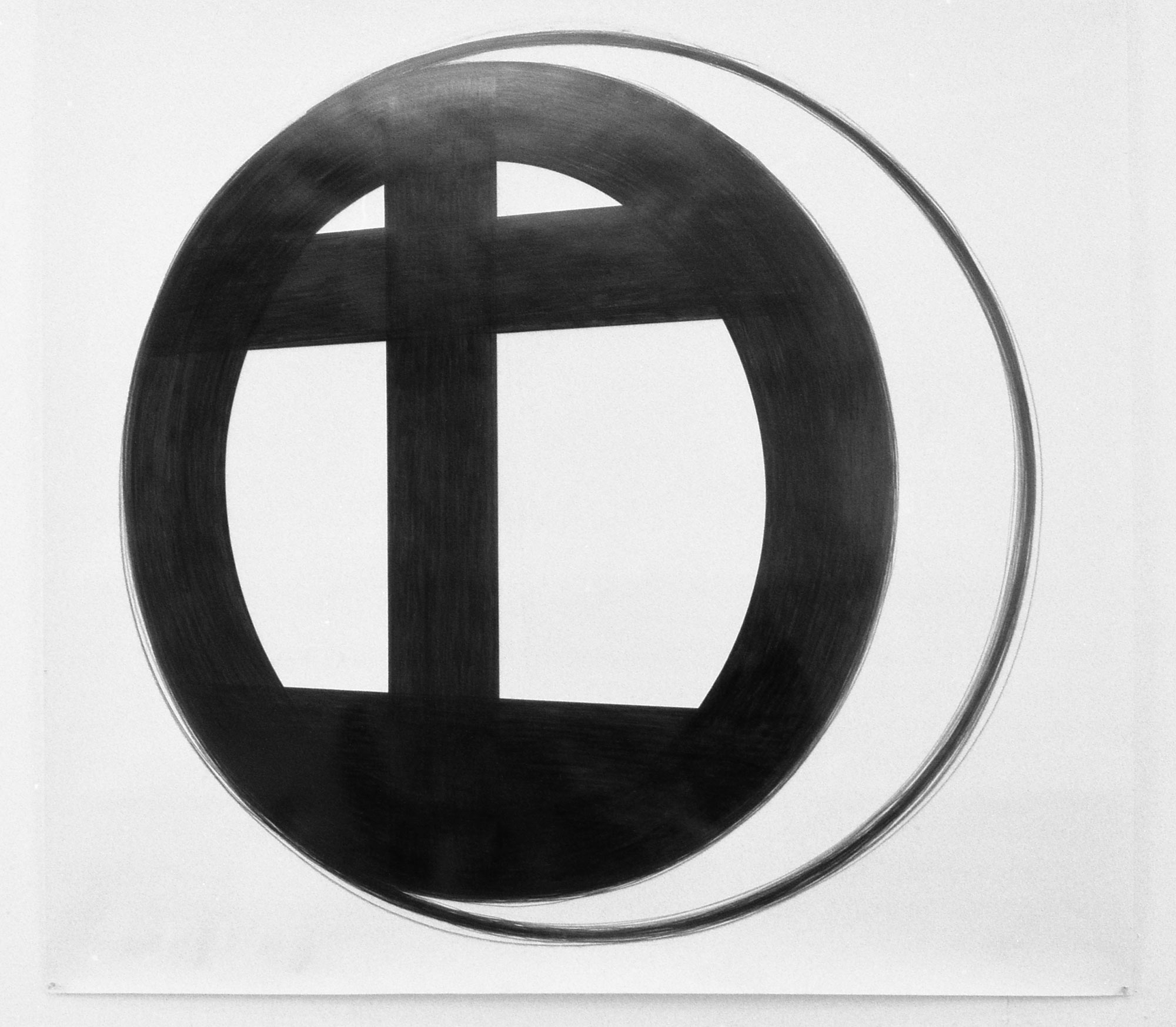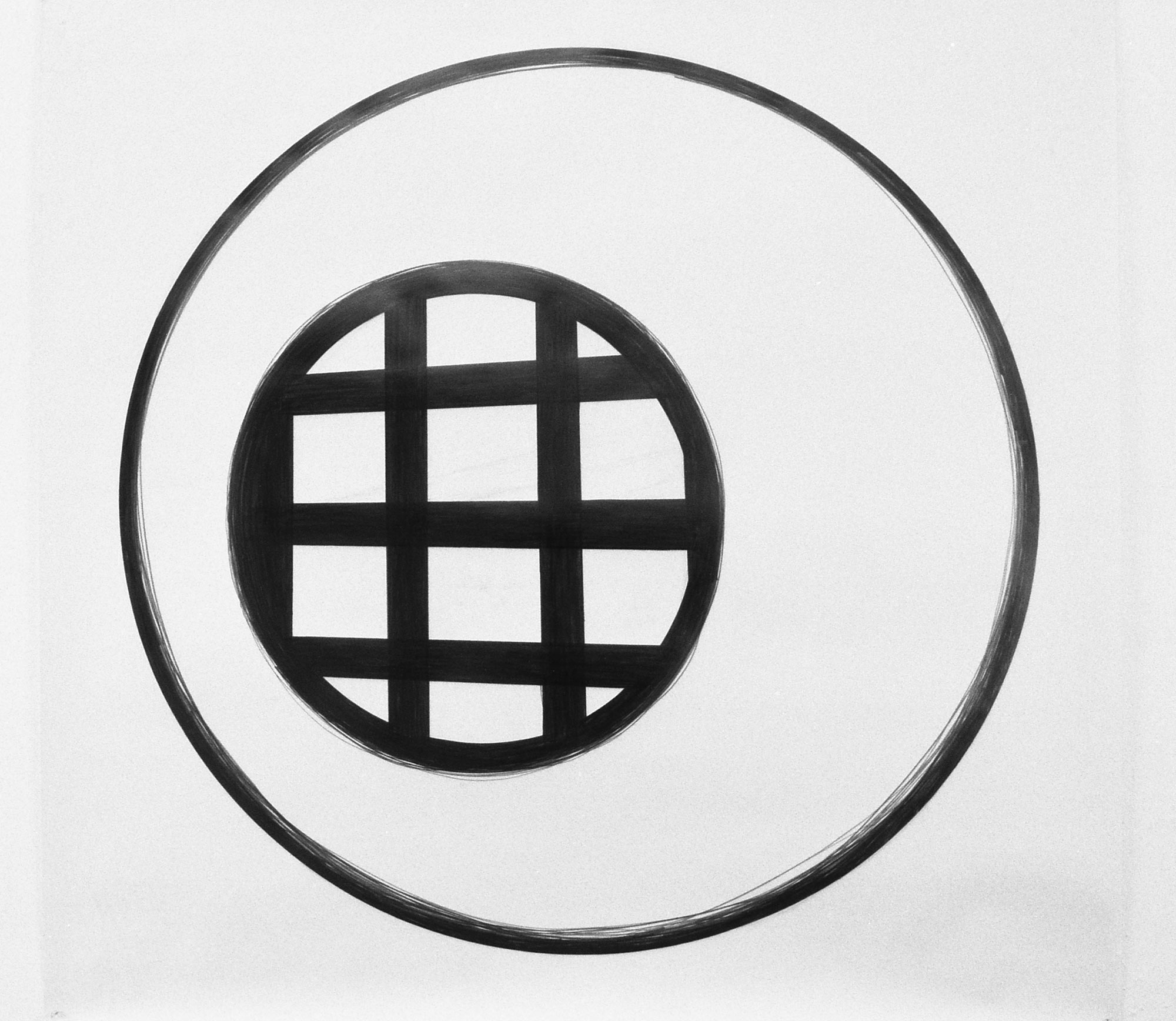 1987 Getekende gaten (150 x 150 cm) Ik speel in deze tekening met beeld en drager, voor- en achtergrond, negatief en positief.